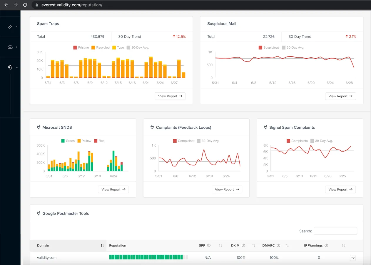 Monitoring email deliverability is of utmost importance to our business. Being able to see when things take a turn for the worse and being able to react quickly helps us keep our email reputation positive and keeps our emails in user's inboxes!